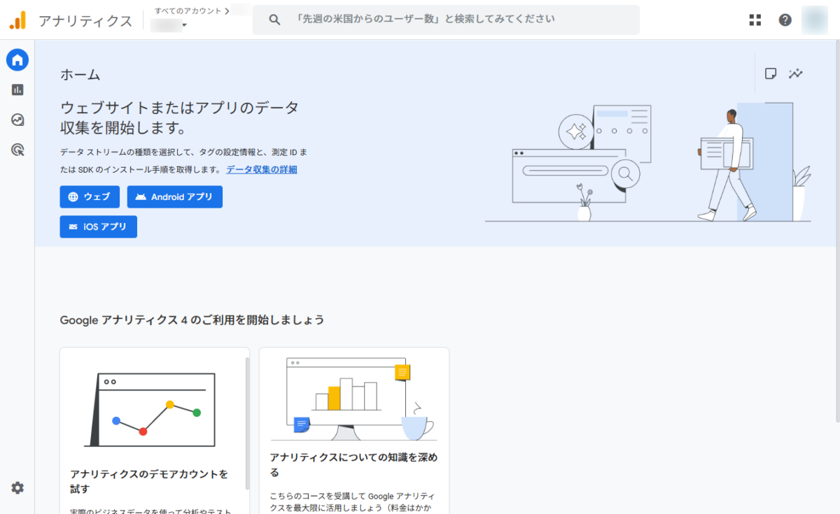 これ以外の画面の場合は、次の項目「GA4計測ID発行済の場合」を確認して測定IDをご確認ください。