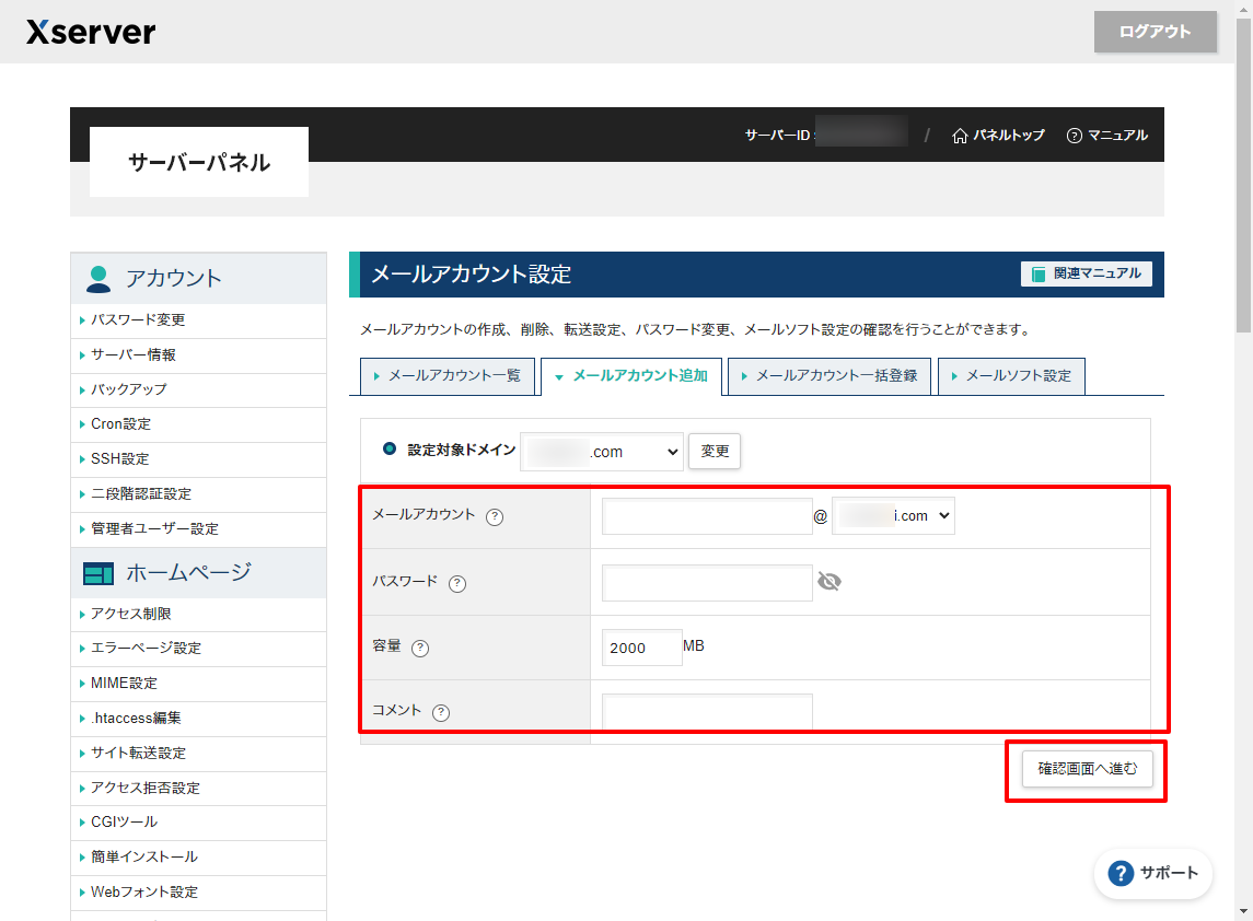 ※エックスサーバーにて対象のドメインを管理している状態であること前提です。
